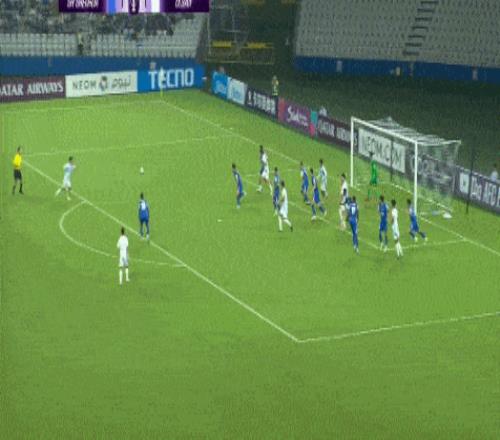 第48分钟,高天意横传经过折射制造混乱,阿苏埃禁区内凌空扫射破门,帮助申花1-0领先蔚山。