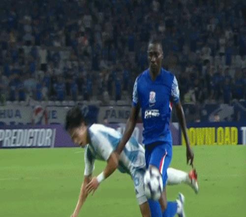 第33分钟,吴曦中圈长传身后,阿苏埃抢到一点球后,被摔倒的蔚山HD球员带倒,主裁拒绝判罚点球。