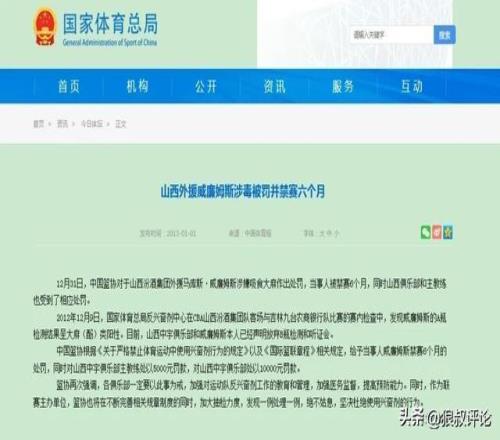 山西中宇俱乐部和威廉姆斯本人已经声明放弃B瓶检测和听证会。